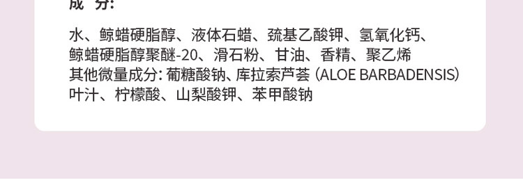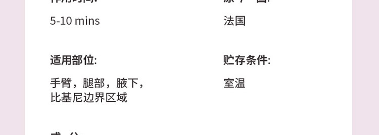 薇婷脫毛膏擁有長(zhǎng)達(dá)3年的保質(zhì)期,只要在保質(zhì)期內(nèi)都可以正常的使用,該產(chǎn)品配方十分的溫和,特別融合了蘆薈、茉莉等天然成分,并且沒有添加任何的刺激性物質(zhì),可以放心的使用,不會(huì)給皮膚帶來(lái)傷害,可以用于全身多個(gè)部位的毛發(fā),脫毛效果十分明顯。只需涂抹于肌膚表面,等待片刻,便可輕松刮除毛發(fā)。另外,若肌膚有破損,請(qǐng)避免使用。
