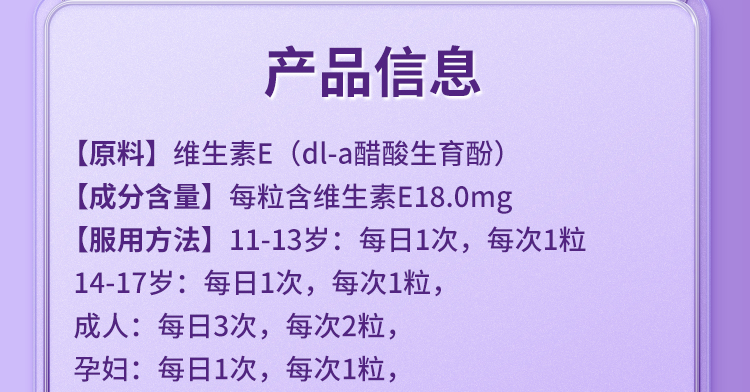 精華評(píng)價(jià) 一直在堅(jiān)持吃維e,,維生素E具有美白養(yǎng)顏抗氧化的功效,內(nèi)服外用效果更好,平時(shí)臉上長(zhǎng)痘痘了也會(huì)在臉上涂。現(xiàn)在皮膚QQ彈彈的,也很白嫩。沒(méi)有斑點(diǎn)之類的。護(hù)膚是長(zhǎng)期的事情,要一直堅(jiān)持下去。紫一產(chǎn)品的價(jià)格很實(shí)惠,性價(jià)比很高,一直用的商城家的產(chǎn)品。還是挺值得購(gòu)買的。