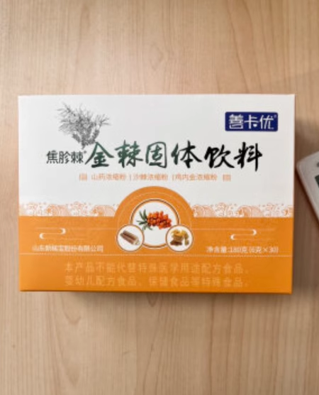 丁梔酸在藥店叫善卡優(yōu)焦胗棘金棘固體飲料,該產(chǎn)品中含有山楂濃縮粉、山藥濃縮粉、雞內(nèi)金濃縮粉等,能夠加快腸道蠕動(dòng)速度,對(duì)于消化不良以及便秘有著明顯的改善作用,并且對(duì)于腸胃積食導(dǎo)致的口臭以及腹脹也有著不錯(cuò)的緩解作用,其中還添加了大棗濃縮粉等成分,可以幫助改善失眠多夢(mèng)以及心悸不齊等問(wèn)題,對(duì)于人體亞健康導(dǎo)致的渾身疲憊以及精神不佳也有著不錯(cuò)的改善作用。