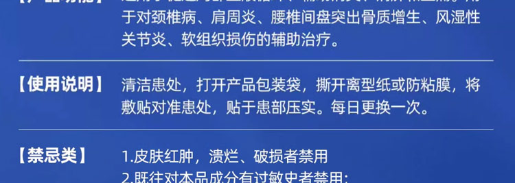 注意事項(xiàng):皮膚破損、潰爛者禁用,過(guò)敏性體質(zhì)者慎用。