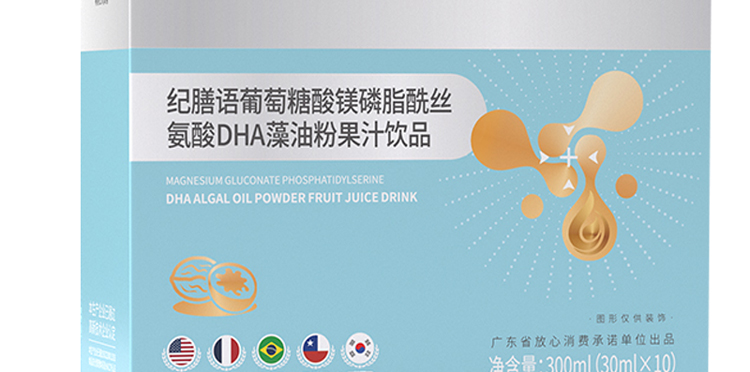 • 主要成分 磷脂酰絲氨酸,核桃肽,DHA藻油粉,煙酰胺等
