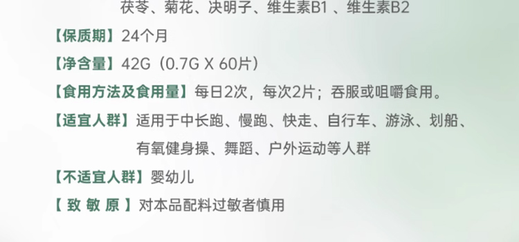 • 注意事項 本產品為膳食補充劑,不能代替藥物,不宜超過推薦量或與同類營養(yǎng)補充劑同時食用