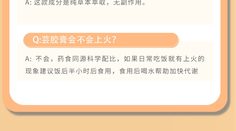 蕓膠膏具有補(bǔ)氣血、促進(jìn)代謝、祛除濕氣等效果,能幫助人體改善亞健康狀態(tài)。這是一款純草本精華制作而成的膳食補(bǔ)充劑,里面包含有阿膠、人參、赤小豆、茯苓、荷葉以及陳皮等成分,能夠有效起到滋補(bǔ)血液和調(diào)理氣血的效果,堅(jiān)持補(bǔ)充還能夠改善貧血、月經(jīng)不調(diào)、氣血不足等問題,日常有膚色暗沉、便秘、濕氣重等問題都可以使用蕓膠膏改善情況,有需要的可以通過健康商城購(gòu)買。