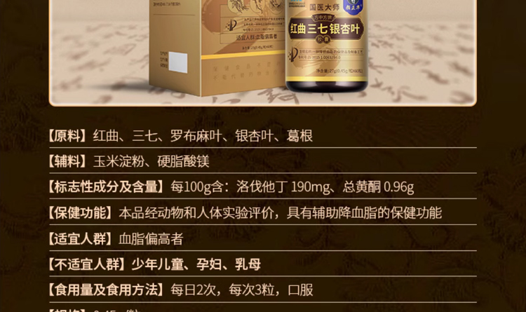 顏正華紅曲三七銀杏葉膠囊是有用的。這款產(chǎn)品擁有藍帽標識,品質(zhì)是有保障的,其中所選取的原材料包含了紅曲、三七、羅布麻葉以及葛根等原材料,這些都是較常應用于心血管問題調(diào)理的藥食兩用原材料,能夠改善血液的流動速度,幫助加快脂質(zhì)物質(zhì)的代謝,從而達到輔助降低血脂,呵護心血管健康的作用與功效。