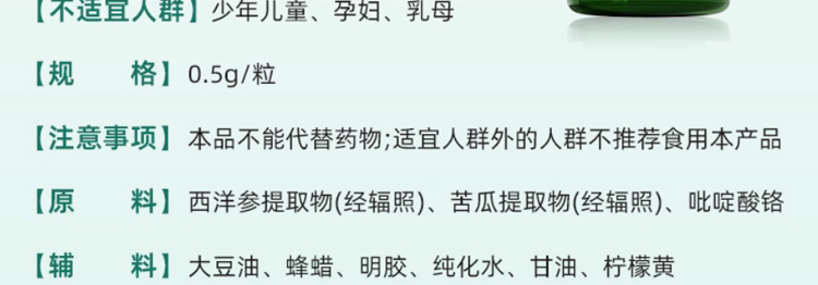 蘇適爾平衡片是一款苦瓜西洋參鉻軟膠囊,主要成分包括西洋參提取物、苦瓜提取物、 吡啶甲酸銘,具有輔助降血糖的藍(lán)帽保健功能。其中西洋參中富含的人參皂苷能增強(qiáng)胰島素的敏感性,促進(jìn)胰島素的分泌,從而有助于血糖的穩(wěn)定。而苦瓜提取物中的苦瓜多糖,則有助于緩解胰島素抵抗,提高胰島細(xì)胞的功能,進(jìn)一步改善糖代謝過(guò)程。鉻元素也是調(diào)節(jié)葡萄糖代謝的關(guān)鍵元素,與西洋參和苦瓜提取物共同作用,可增強(qiáng)胰島細(xì)胞的功能,降低血糖水平。同時(shí)要注意少吃含糖量過(guò)高的食物,如巧克力、餅干等,適當(dāng)進(jìn)行運(yùn)動(dòng)。
