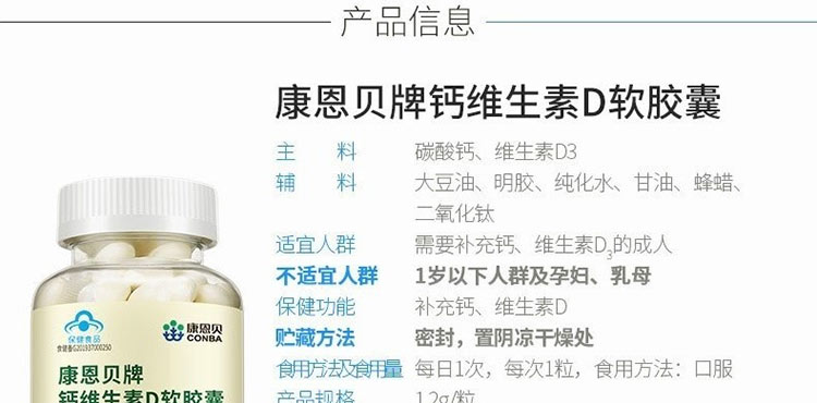 康恩貝鈣D軟膠囊的作用有哪些呢? 康恩貝鈣D軟膠囊具體多少錢呢?眾所周知,鈣D軟膠囊由碳酸鈣、維生素D3、大豆油、甘油、明膠、水、二氧化鈦構(gòu)成的,它能夠提供我們身體所需要的更多的鈣元素,而維生素D能夠幫助我們更好的吸收鈣質(zhì),以便鈣質(zhì)不會(huì)流失??刀髫愨}D軟膠囊的作用有哪些呢? 鈣D軟膠囊的功效主要在哪方便體現(xiàn)呢?