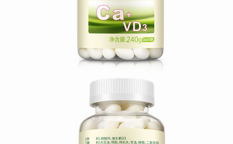 • 主要成分 碳酸鈣、維生素D3、大豆油、蜂蠟、明膠、甘油、二氧化鈦