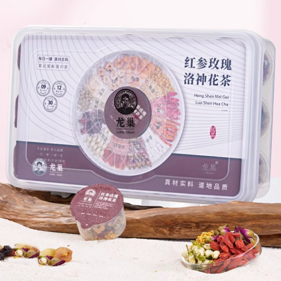 - 主要成分:桑葚,玫瑰茄,重瓣玫瑰,黑枸杞,紅參,陳皮,茉莉花,紅棗,百合