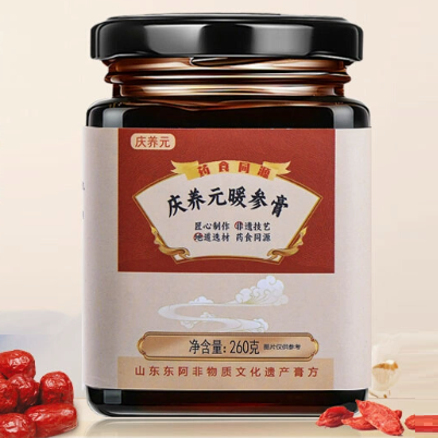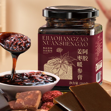 • 主要成分:蜂蜜、紅糖、枸杞子、生姜、大棗、阿膠、麥芽、人參(五年及五年以下人工種植)