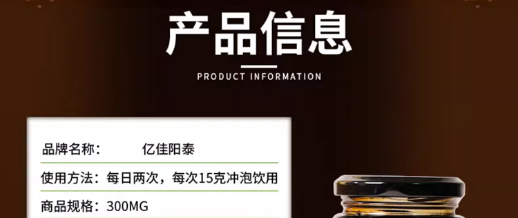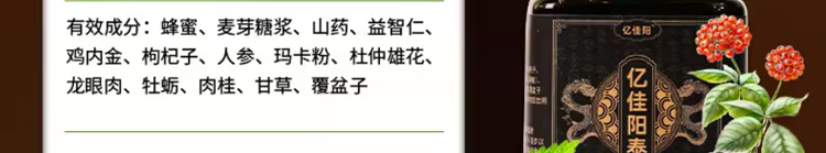 億佳陽泰圖片為黑色外包裝的瓶裝膏滋,建議在購買時可以認(rèn)準(zhǔn)產(chǎn)品唯一的批準(zhǔn)文號:SC10734160330934和生產(chǎn)廠家:安徽聚合健康產(chǎn)業(yè)發(fā)展有限公司,以確保產(chǎn)品的質(zhì)量和服用效果。億佳陽泰中富含人參、瑪咖、牡蠣、肉桂等多種營養(yǎng)成分,這些成分相互作用可以起到補(bǔ)腎壯陽的作用,還可以緩解腰膝疼痛、房事不濟(jì)等多種亞健康問題。