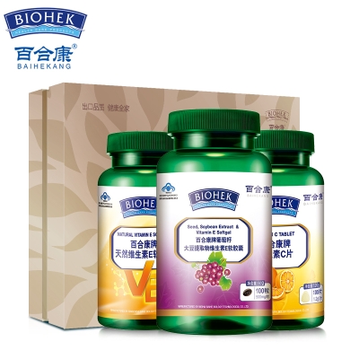 百合康 葡萄籽大豆提取物100粒+天然維生素E100粒+VC100片1>