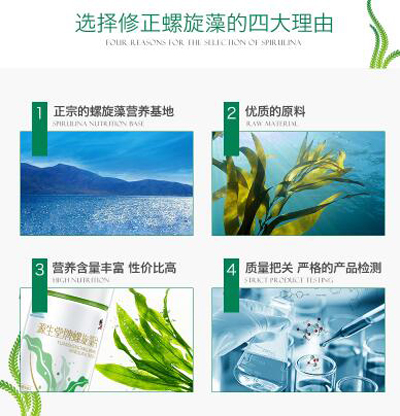 說(shuō)起螺旋藻,不得不提的就是修正出品的這款明星產(chǎn)品:修正源生堂牌螺旋藻片,國(guó)家批準(zhǔn)“增強(qiáng)免疫力”產(chǎn)品,國(guó)食健字G20100273,每100g含:蛋白質(zhì) 61.5g,營(yíng)養(yǎng)價(jià)值非常高。